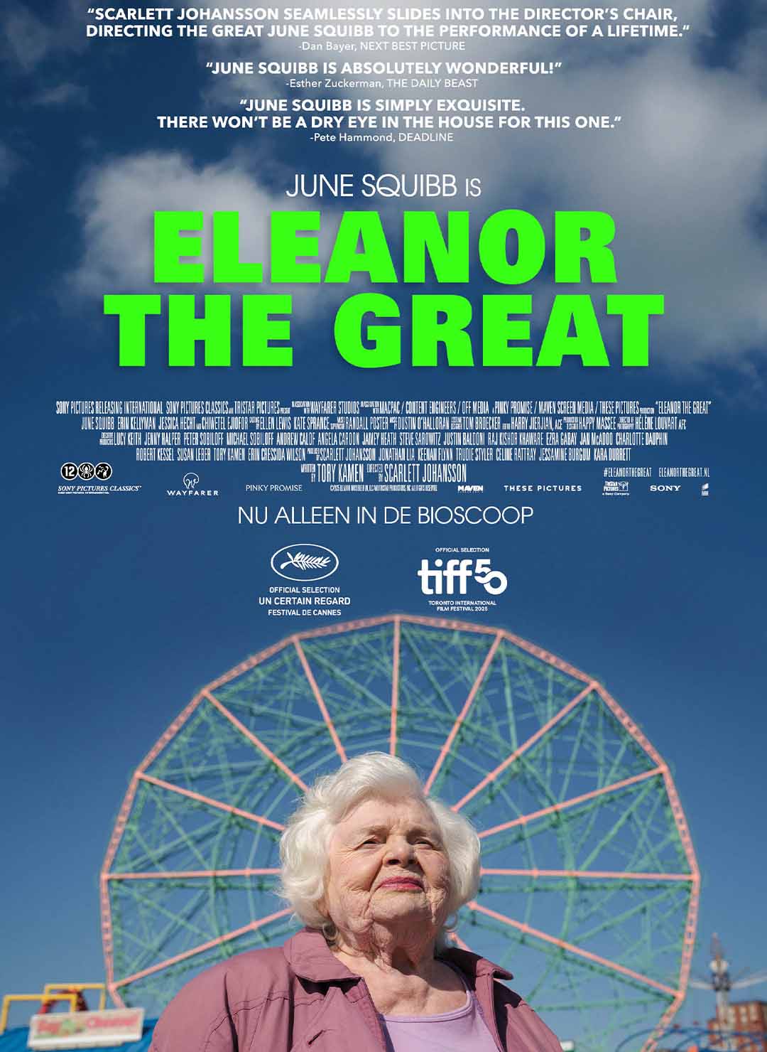 In Eleanor the Great speelt June Squibb (Thelma) op fenomenale wijze de titelrol van de pittige 94-jarige Eleanor die een verhaal vertelt dat een compleet eigen leven gaat leiden. Eleanor Morgenstein is altijd al zeer betrokken geweest bij de mensen om haar heen. Na een sterfgeval dat haar wereld op zijn kop zet, besluit ze om van Florida naar New York te verhuizen. Ze trekt in bij haar dochter en kleinzoon in de hoop hun familieband te versterken, maar voelt zich daar alleen maar eenzaam en onzichtbaar. Op een dag belandt ze per ongeluk bij een praatgroep waar ze een verhaal vertelt dat haar onbedoeld veel aandacht oplevert. Terwijl een jonge journalistiekstudente in haar een vriendin en mentor ziet, zijn de gevolgen voor Eleanor niet te overzien. Als de situatie uiteindelijk uit de hand dreigt te lopen, kan ze niet meer om de waarheid heen. Het regiedebuut van Scarlett Johansson snijdt thema’s aan als ouderdom, familie, rouw en verraad. Het is een verhaal over vriendschap en geschiedenis dat laat zien hoe gecompliceerd wij als mensen kunnen zijn.
