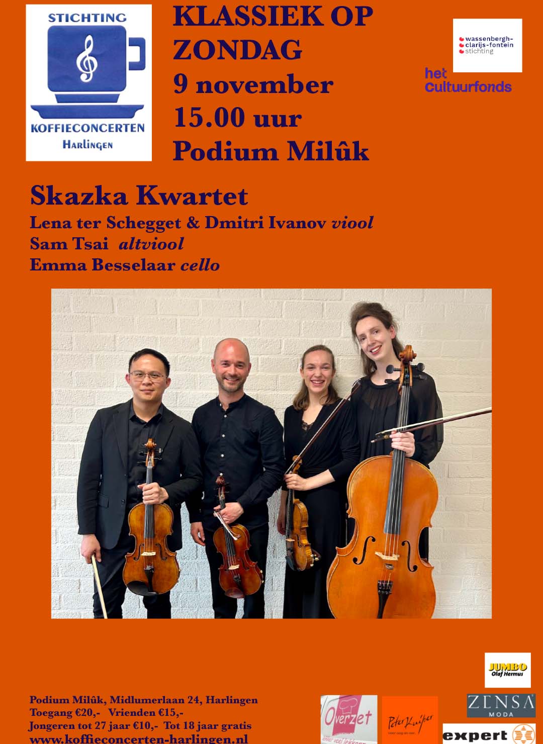 Kaarten te reserveren via info@koffieconcerten-harlingen.nl