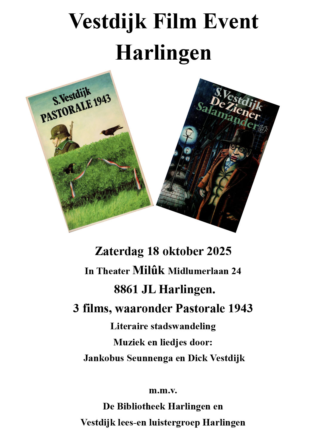 Op zaterdag 18 oktober 2025 vindt het Vestdijk Film Event plaats in Theater Milûk te Harlingen. Voor het eerst worden op één dag de verfilmingen van drie bekende boeken van deze beroemde in Harlingen geboren schrijver vertoond. De films worden toegelicht door Dick Vestdijk, de zoon van de auteur, en omlijst door passende muziek, een literaire wandeling en ontmoetingen tussen kenners en liefhebbers van en geïnteresseerden in de literaire nalatenschap van Simon Vestdijk. Door de lokale Openbare Bibliotheek is een boekencorner met de werken van de auteur ingericht.